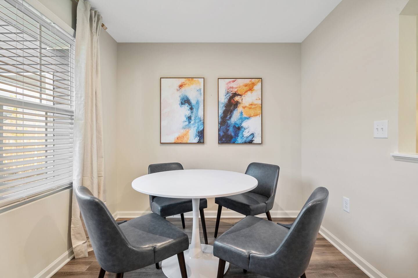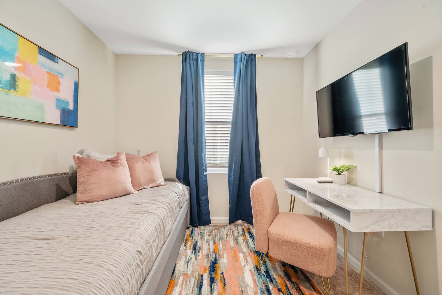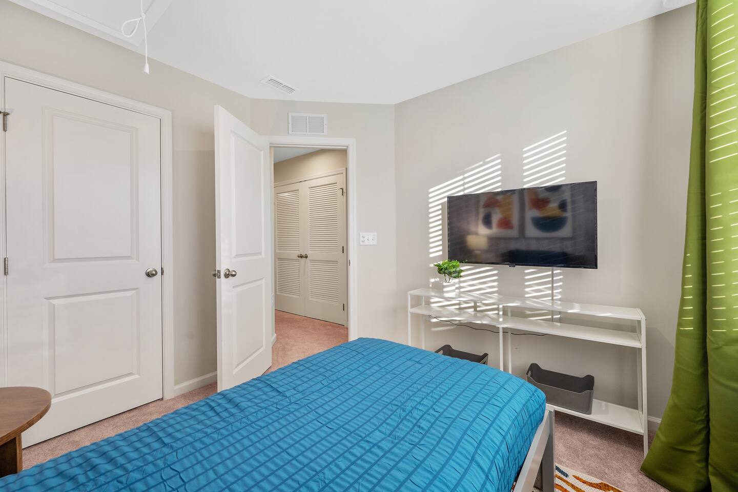 A Comfortable, Well-Equipped Townhome Designed for Short & Extended Stays Welcome to a spacious 3-bedroom townhome thoughtfully designed for traveling professionals, relocating families, and short-term guests seeking comfort, privacy, and convenience. Whether you’re staying for a weekend, several weeks, or longer, this home offers the functionality of daily living with the ease of a professionally managed stay. Located just 10 minutes from Duke University and major medical centers, this quiet, pet-friendly townhome provides a peaceful retreat while keeping you close to everything Durham has to offer. Ideal for Extended Stays & Remote Work This home is intentionally set up for guests staying beyond a few nights: High-speed Wi-Fi suitable for remote work and streaming Dedicated workspaces with ergonomic seating Optional external monitor available upon request In-unit washer and dryer for longer-stay convenience Fully equipped kitchen for daily cooking and family meals Comfortable Living Spaces Spacious living room with ample seating Smart TVs in the living room and all bedrooms Central heating and air conditioning for year-round comfort Fully Equipped Kitchen Stainless steel appliances Complete cookware and utensils Coffee bar with Keurig coffee maker and tea kettle Bedrooms & Sleeping Arrangements: Primary Bedroom: Queen bed with ensuite bathroom featuring a shower and tub Bedroom 2: Twin bed with closet storage Bedroom 3: Comfortable daybed with a pull out trundle bed and a dedicated workspace Each bedroom includes quality bedding, blackout curtains, hangers, and thoughtful touches to support restful sleep. Pet-Friendly & Family-Friendly We welcome well-behaved pets and families. Spacious layout suitable for children and longer stays This home includes: Board games for family time Outdoor seating area for relaxation Safety & Peace of Mind Keyless entry Smoke and carbon monoxide detectors First aid kit Doorbell camera (exterior only) Quiet residential neighborhood 📍 Prime Durham Location Enjoy convenient access to some of Durham’s most popular destinations: Nearby Attractions: Sarah P. Duke Gardens Museum of Life and Science Durham Bulls Athletic Park American Tobacco Campus DPAC (Durham Performing Arts Center) Eno River State Park Shopping & Dining Streets at Southpoint Mall Chick-fil-A, Starbucks, Panera Bread, Chipotle, Five Guys (within ~1.5 miles) Local favorites including Silver Spoon Restaurant and Dogwood Bar & Grill Nearby Medical Centers (Under 10 Minutes) Duke Regional Hospital Duke Medical Plaza (North Duke Street) North Carolina Specialty Hospital Select Specialty Hospital Duke University Medical Center Durham VA Medical Center Why Guests Choose This Home: Guests appreciate the cleanliness, quiet setting, flexible stay options, and proximity to Duke and medical centers—making this an excellent choice for both short visits and extended stays. Weekly and monthly discounts are available.