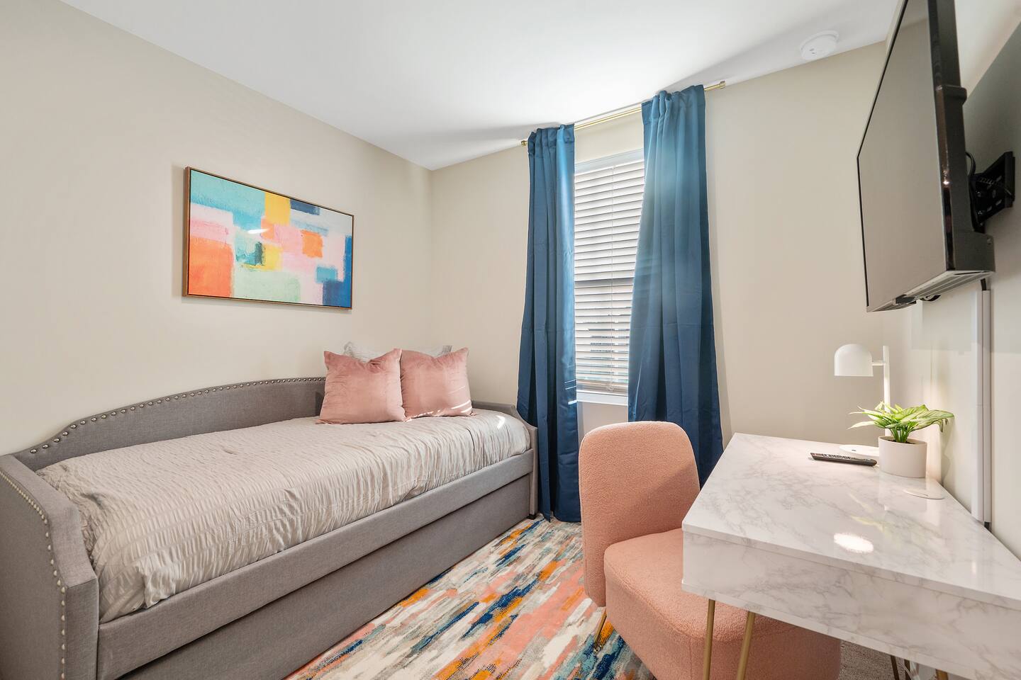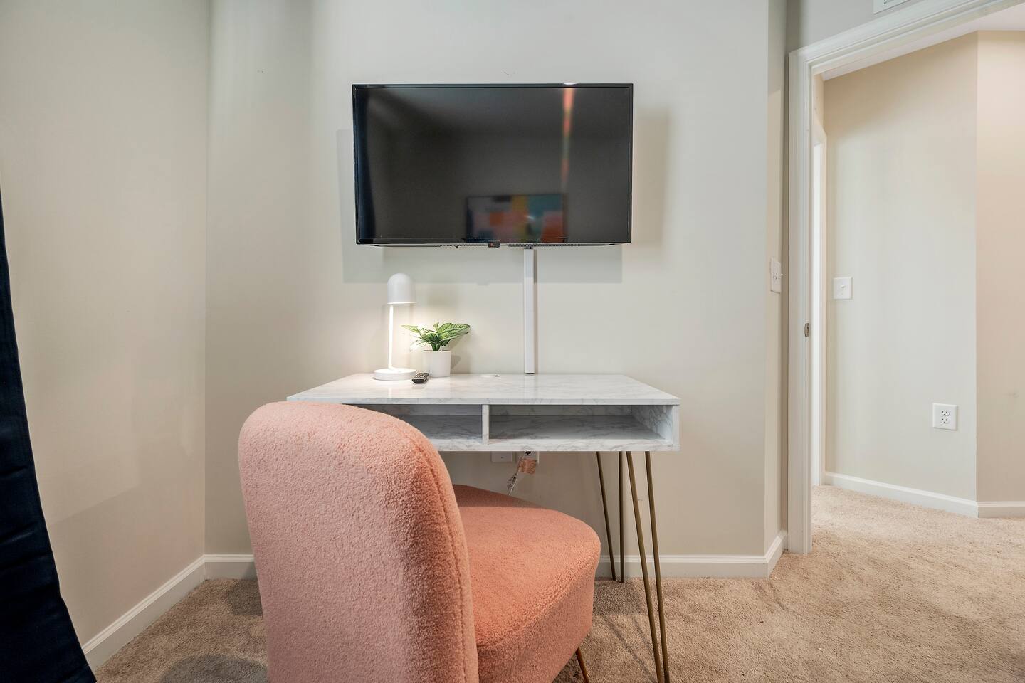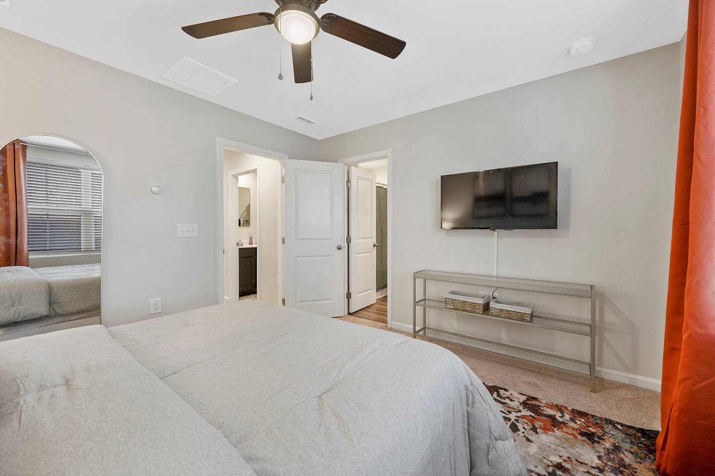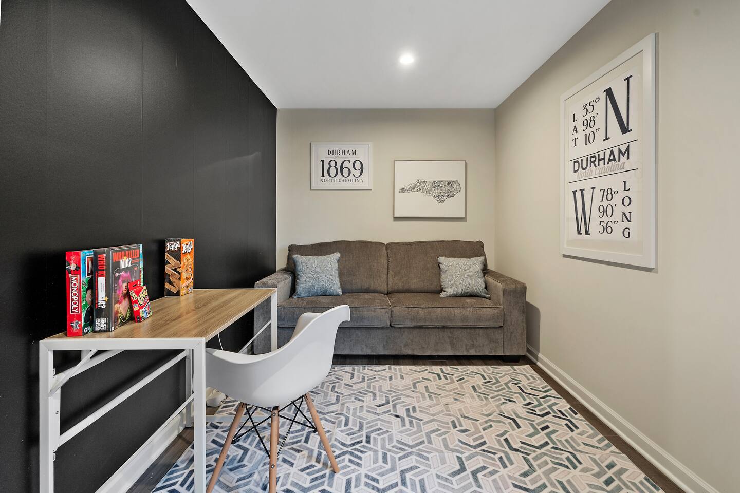 A Comfortable, Well-Equipped Townhome Designed for Short & Extended Stays Welcome to a spacious 3-bedroom townhome thoughtfully designed for traveling professionals, relocating families, and short-term guests seeking comfort, privacy, and convenience. Whether you’re staying for a weekend, several weeks, or longer, this home offers the functionality of daily living with the ease of a professionally managed stay. Located just 10 minutes from Duke University and major medical centers, this quiet, pet-friendly townhome provides a peaceful retreat while keeping you close to everything Durham has to offer. Ideal for Extended Stays & Remote Work This home is intentionally set up for guests staying beyond a few nights: High-speed Wi-Fi suitable for remote work and streaming Dedicated workspaces with ergonomic seating Optional external monitor available upon request In-unit washer and dryer for longer-stay convenience Fully equipped kitchen for daily cooking and family meals Comfortable Living Spaces Spacious living room with ample seating Smart TVs in the living room and all bedrooms Central heating and air conditioning for year-round comfort Fully Equipped Kitchen Stainless steel appliances Complete cookware and utensils Coffee bar with Keurig coffee maker and tea kettle Bedrooms & Sleeping Arrangements: Primary Bedroom: Queen bed with ensuite bathroom featuring a shower and tub Bedroom 2: Twin bed with closet storage Bedroom 3: Comfortable daybed with a pull out trundle bed and a dedicated workspace Each bedroom includes quality bedding, blackout curtains, hangers, and thoughtful touches to support restful sleep. Pet-Friendly & Family-Friendly We welcome well-behaved pets and families. Spacious layout suitable for children and longer stays This home includes: Board games for family time Outdoor seating area for relaxation Safety & Peace of Mind Keyless entry Smoke and carbon monoxide detectors First aid kit Doorbell camera (exterior only) Quiet residential neighborhood 📍 Prime Durham Location Enjoy convenient access to some of Durham’s most popular destinations: Nearby Attractions: Sarah P. Duke Gardens Museum of Life and Science Durham Bulls Athletic Park American Tobacco Campus DPAC (Durham Performing Arts Center) Eno River State Park Shopping & Dining Streets at Southpoint Mall Chick-fil-A, Starbucks, Panera Bread, Chipotle, Five Guys (within ~1.5 miles) Local favorites including Silver Spoon Restaurant and Dogwood Bar & Grill Nearby Medical Centers (Under 10 Minutes) Duke Regional Hospital Duke Medical Plaza (North Duke Street) North Carolina Specialty Hospital Select Specialty Hospital Duke University Medical Center Durham VA Medical Center Why Guests Choose This Home: Guests appreciate the cleanliness, quiet setting, flexible stay options, and proximity to Duke and medical centers—making this an excellent choice for both short visits and extended stays. Weekly and monthly discounts are available.